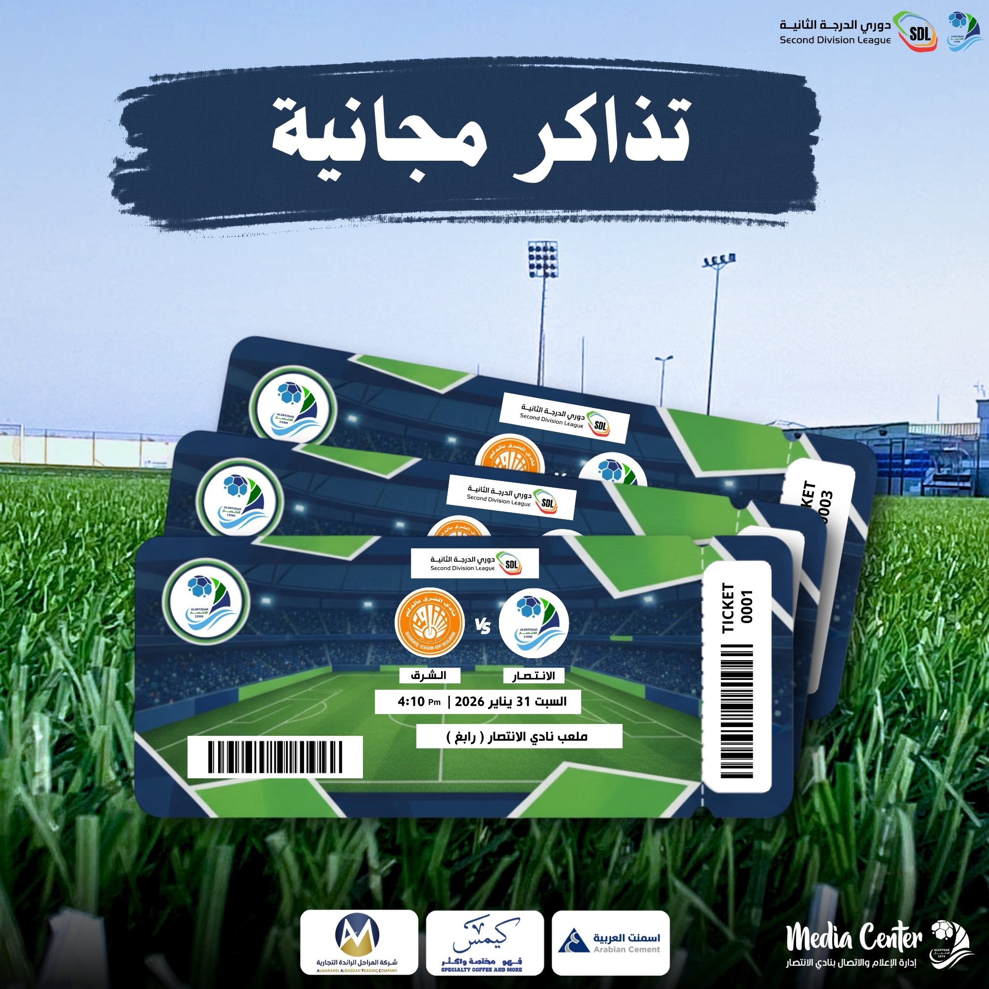 مباراة الانتصار x الشرق أحدث الأخبار أخبار النادي الانتصار يحقق النتيجة المؤهلة للدعم 3 ديسمبر، 2023 | أخبار النادي 2 بـنصـف درزنْ .. #السماوي” يُـسلطِنْ 22 أكتوبر، 2024 | أخبار النادي 3 مبـــــــاراة ودية 7 أكتوبر، 2025 | أخبار النادي 4 أخبار الوزارة جولات التاسيس 15 فبراير، 2026 | أخبار الوزارة 4 البطل: قرر التحليق 14 فبراير، 2026 | أخبار الوزارة 4 صقورنا إلى نصف نهائي بطولة كأس العرب 11 ديسمبر، 2025 | أخبار الوزارة 4 أخبار المحافظة لون الحياة 8 مارس، 2026 | أخبار المحافظة، أخبار النادي مبادرة اجمل تلاوة 1 مارس، 2026 | أخبار المحافظة، أخبار النادي يوم التاسيس 22 فبراير، 2026 | أخبار المحافظة