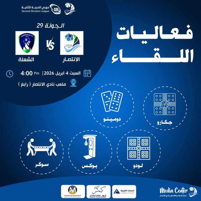مباراة الانتصار x الشعلة أحدث الأخبار أخبار النادي نادي الانتصار يبارك للاخضر السعودي التأهل 12 سبتمبر، 2023 | أخبار النادي 0 تذكرة مباراة الروضة والانتصار 15 نوفمبر، 2023 | أخبار النادي 1 في عِـزْ النهار .. حققنا الانتصار من أمام الأنوار 3 نوفمبر، 2024 | أخبار النادي 3 أخبار الوزارة جولات التاسيس 15 فبراير، 2026 | أخبار الوزارة 4 البطل: قرر التحليق 14 فبراير، 2026 | أخبار الوزارة 4 صقورنا إلى نصف نهائي بطولة كأس العرب 11 ديسمبر، 2025 | أخبار الوزارة 4 أخبار المحافظة لون الحياة 8 مارس، 2026 | أخبار المحافظة، أخبار النادي مبادرة اجمل تلاوة 1 مارس، 2026 | أخبار المحافظة، أخبار النادي يوم التاسيس 22 فبراير، 2026 | أخبار المحافظة