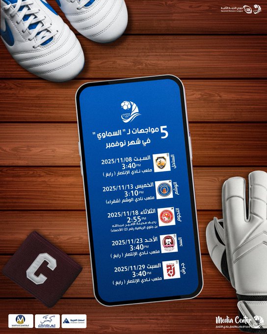 في شهر نوفمبر مباريات يخوضها #السماوي كل الدعوات لنادينا بالتوفيق أحدث الأخبار أخبار النادي مجلس إدارة النادي تتعاقد مع اللاعب محمد السكراني 30 أغسطس، 2023 | أخبار النادي 0 الانتصار في سبتمبــر 3 سبتمبر، 2024 | أخبار النادي 5 مبادرة اجمل تلاوة 14 مايو، 2025 | أخبار المحافظة، أخبار النادي 4 أخبار الوزارة جولات التاسيس 15 فبراير، 2026 | أخبار الوزارة 4 البطل: قرر التحليق 14 فبراير، 2026 | أخبار الوزارة 4 صقورنا إلى نصف نهائي بطولة كأس العرب 11 ديسمبر، 2025 | أخبار الوزارة 4 أخبار المحافظة لون الحياة 8 مارس، 2026 | أخبار المحافظة، أخبار النادي مبادرة اجمل تلاوة 1 مارس، 2026 | أخبار المحافظة، أخبار النادي يوم التاسيس 22 فبراير، 2026 | أخبار المحافظة